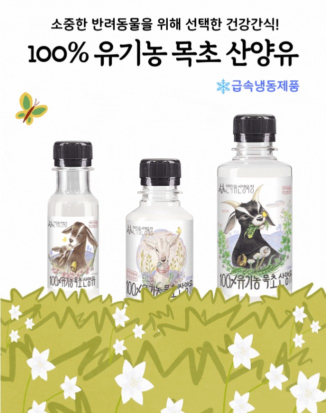 언덕위산양목장은 조금 특별하게, 반려동물 전용 유기농 산양유도 선보이고 있습니다. 냉동 보관 후 해동해 급여할 수 있는 펫밀크 형태로 출시돼, 반려견이나 반려묘의 건강 간식으로 주목받고 있습니다. 한 번 먹여본 소비자들로부터는 기호성이 매우 좋아 꾸준히 주문하게 된다는 호평을 받고 있습니다. 언덕위산양목장 유기농 산양유는 언덕위산양목장 네이버 스마트스토어에서 구매하실 수 있습니다.